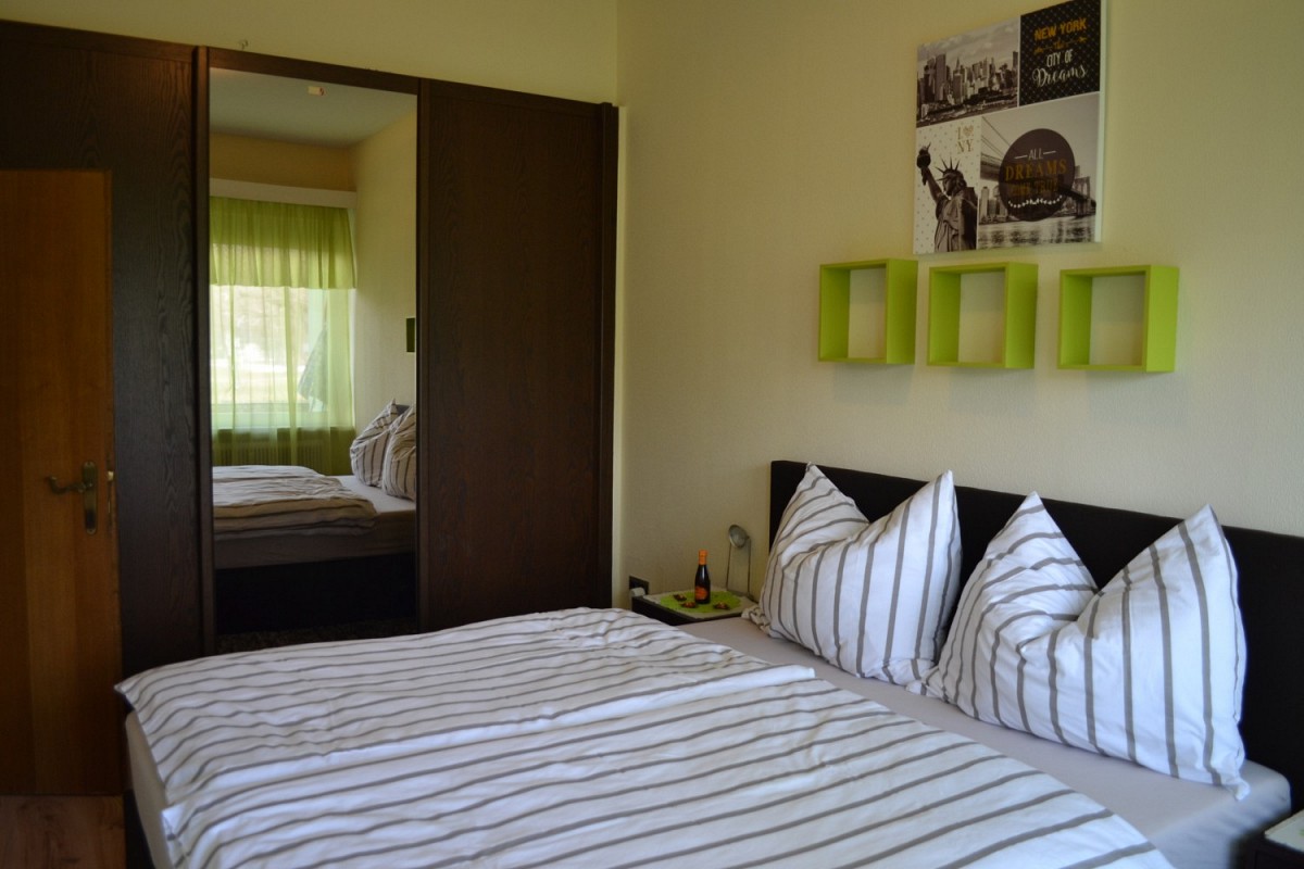 - Schlafzimmer mit Doppelbett und geräumigem Einbauschrank